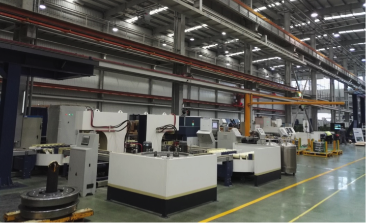 由中國機(jī)械總院鄭機(jī)所研發(fā)的八工位智能離心鑄造機(jī)實(shí)現(xiàn)了汽車缸套生產(chǎn)的自動化、智能化,與單工位汽缸套生產(chǎn)相比,提高了生產(chǎn)效率,降低了人為因素導(dǎo)致的廢品率。八工位智能離心鑄造機(jī)將氣缸套生產(chǎn)的整個(gè)生產(chǎn)流程分散在主體離心機(jī)周圍的不同工位,使整個(gè)生產(chǎn)流程在不同工位同時(shí)進(jìn)行,大大提高了生產(chǎn)效率及生產(chǎn)自動化。通過更換不同的模具類型可實(shí)現(xiàn)單缸套毛坯件和一切二缸套毛坯件的生產(chǎn),提高了生產(chǎn)的靈活性,可滿足不同型號氣缸套的高效生產(chǎn)。